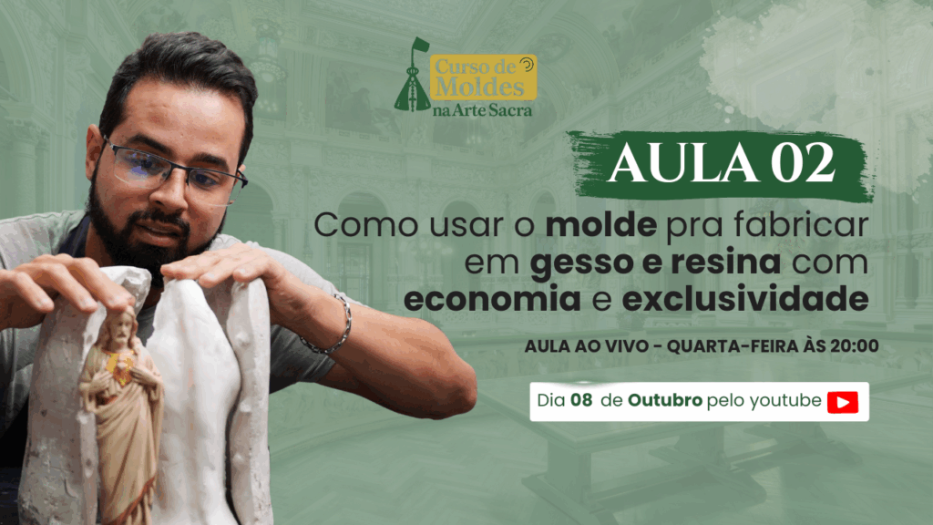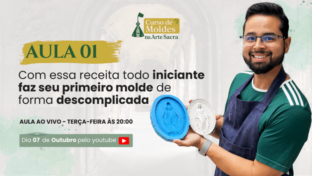 🛠 Se você já pensou em empreender na Arte Sacra mas não sabia por onde começar, esse é o dia de você dar o primeiro passo! No Curso de Moldes na Arte Sacra, eu vou te mostrar como fabricar moldes pra replicar qualquer peça em gesso ou resina na arte sacra católica. O curso acontece nos dias 07 e 08 de outubro, às 20h. O ingresso custa somente 47 reais, é um investimento muito baixo perto do retorno que você pode ter.
